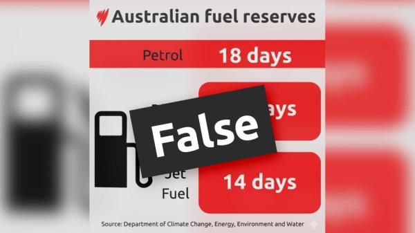 伊朗媒体最近流传一张经过恶意编辑的SBS新闻图表,错误地暗示澳大利亚仅剩18天的汽油储备。